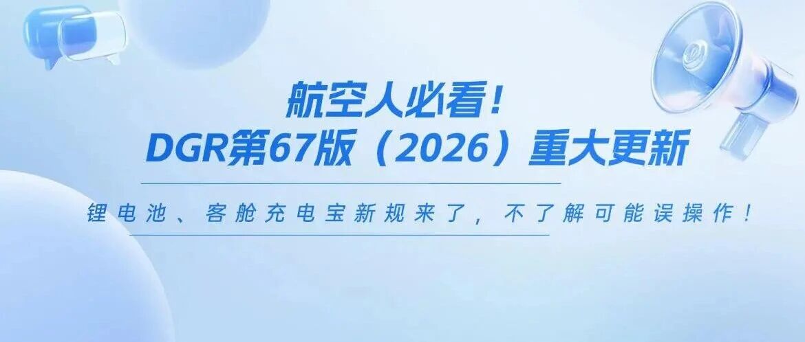 航空人必看!DGR第67版(2026)重大更新:锂电池、客舱充电宝新规来了,不了解可能误操作!
