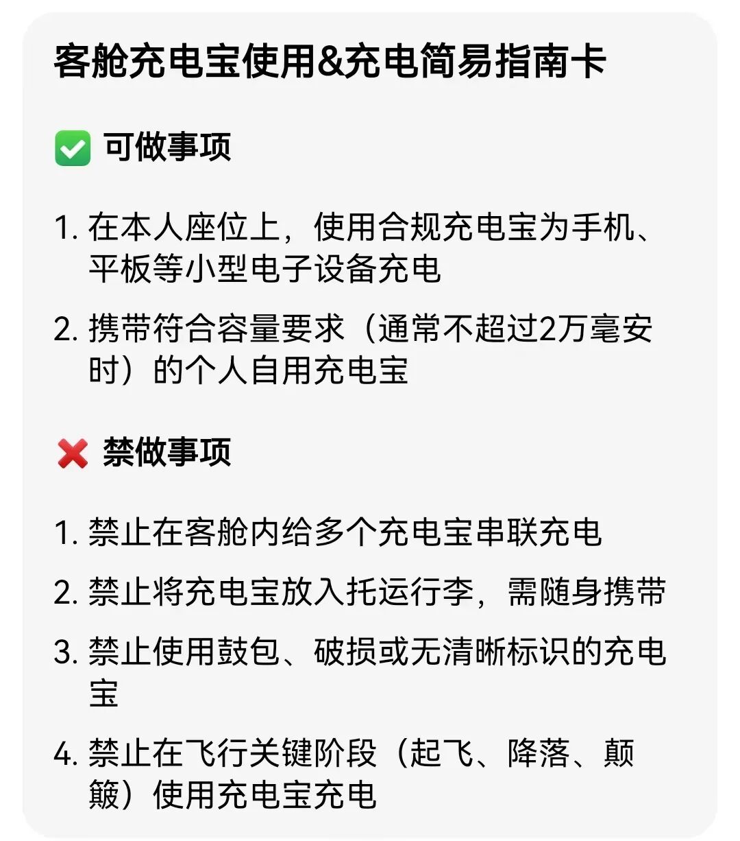 我可以帮你把文中提到的“客舱充电宝可做/禁做事项”整理成一张可打印的简易卡片,方便你直接用于工作或给旅客参考,需要吗?
