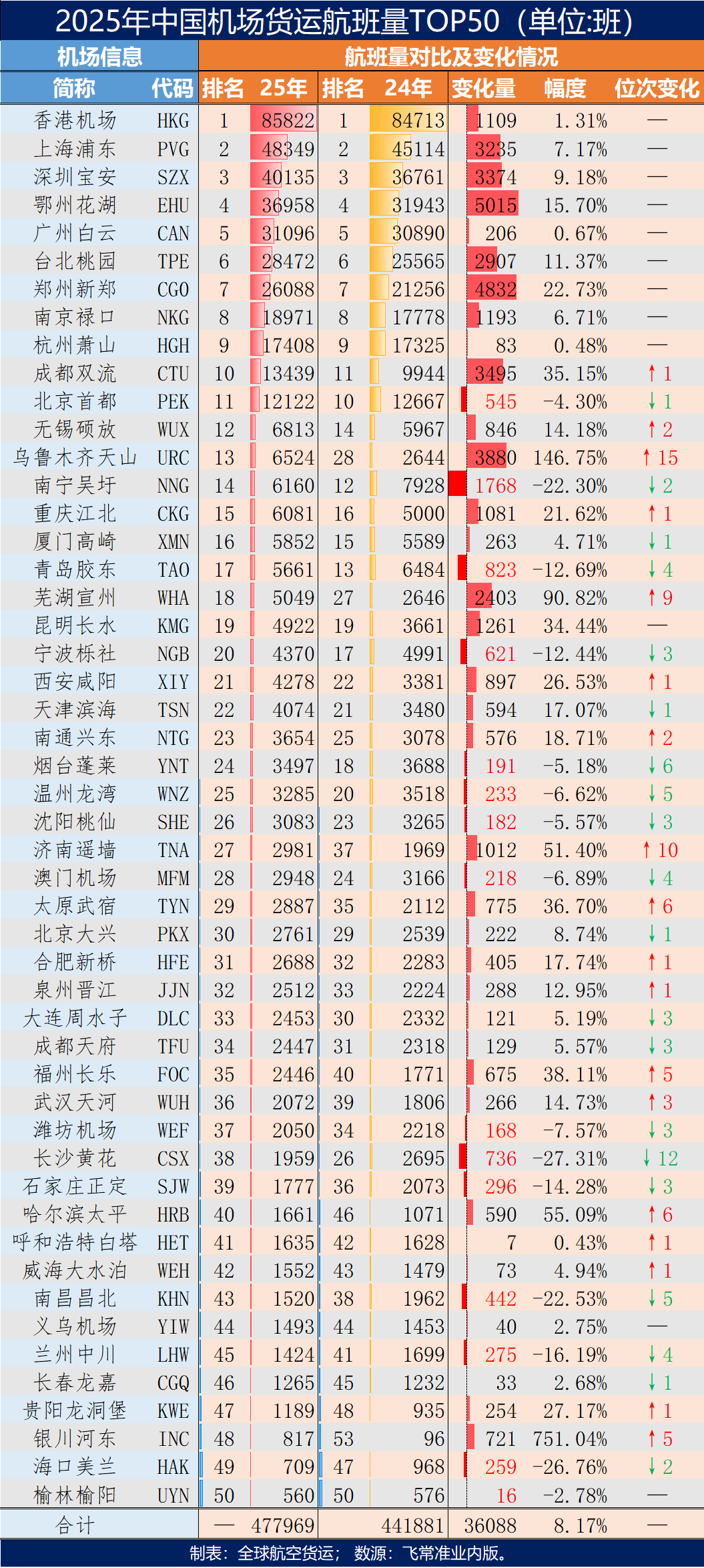 海口美兰以709班排名降至第49,环比减少259班,环比下降26.76%,排名下降2位。