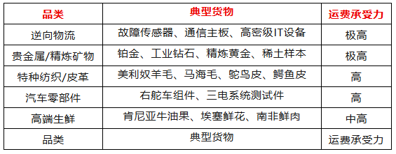 当前中非空运的核心痛点是:南向(中国→非洲)爆满,北向(非洲→中国)货源不足,全货机执飞面临回程利润被摊薄的问题。破解之道在于持续扩充回程高价值货源池: